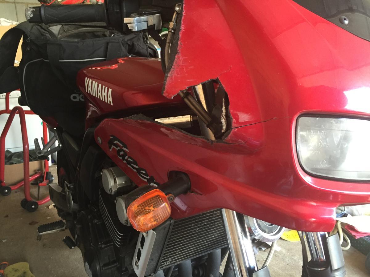 However the pride and joy is not looking great. Exhaust snapped off and my front fairing is slightly U/S.