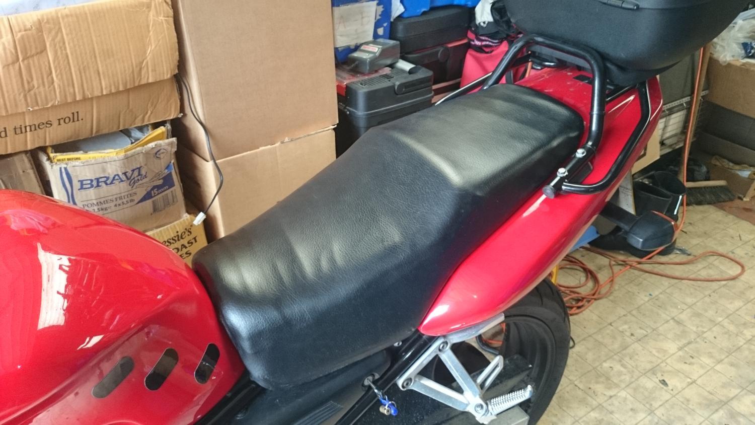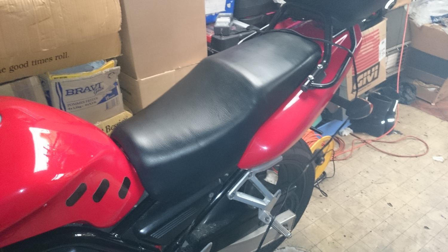 Cheers celticdog, didn't take that long tbh, I suppose another big run will determine whether I strip it out and 'cut' it into the foam, but it looks fairly neat I'm my opinion, still thinking now I've done this, I could get a cover like yours made by a guy in Falkirk (within riding distance to me and I actually work thete a lot) bit I'd maybe get a wee extra wedge put on my part of seat, make it look like a real job :lol
