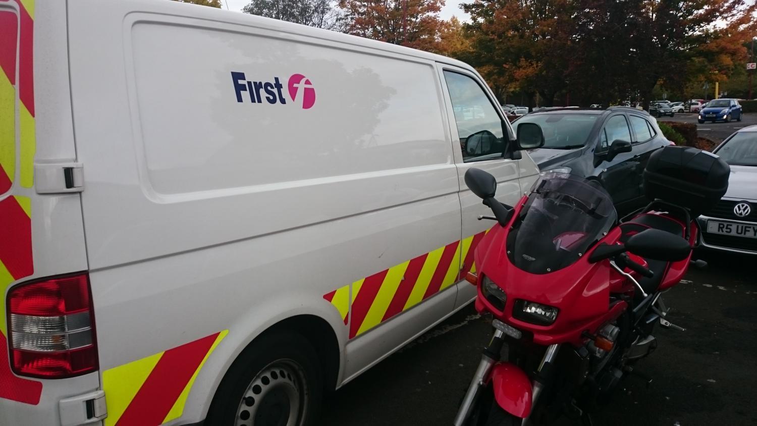 Its a red bike sinto....I doubt the white van man even  registered it as being there.....in the space time continue-errr-umm....it wasn't even parked by the time he got there....I'd be out lubin that throttle cable mate...