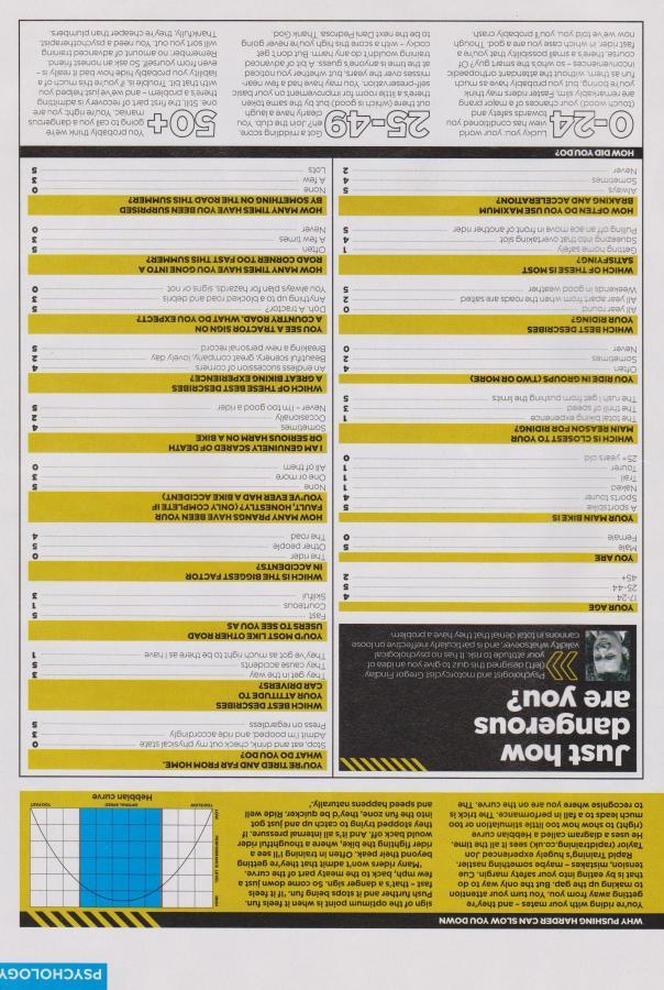 Out of curiosity I went through it and answered all questions as honestly as possible and scored 36. Well it appears I am not a total nutter on a bike