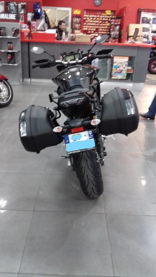 I have had my MT09 now for nearly 3 years and loved it, just so light to flick about and loads of fun. Anyway as I am doing more touring now than day to day ridding decided the MT09 with it's 14 ltr tank was no longer ideal so chopped it for this new unreg MT09 Tracer. Picked it up yesterday and in glorious sunshine decided to have a run to get the feel of her, first impressions are favourable. Seating position is better as it is a more upright ride so easier on my dodgy knees. An hour into my ride it started to snow. We never get snow in this part of France so bugger that headed for home. I have a few bits and pieces from my 09 I removed to fit on the Tracer. I am sure Tracey and me are going to enjoy many happy times together. So far for this year planned tours are end of March down to the Costa Blanca (weather window dependent) as I have to either go around the Pyrenees or under them Col de Someport tunnel. In May a group of us from are meeting up in Cochem in Germany and in August heading over to Ireland for the Armoy & UGP road races, Plan is the week between the two races is to do part of the Wild Atlantic Way Roll on Spring